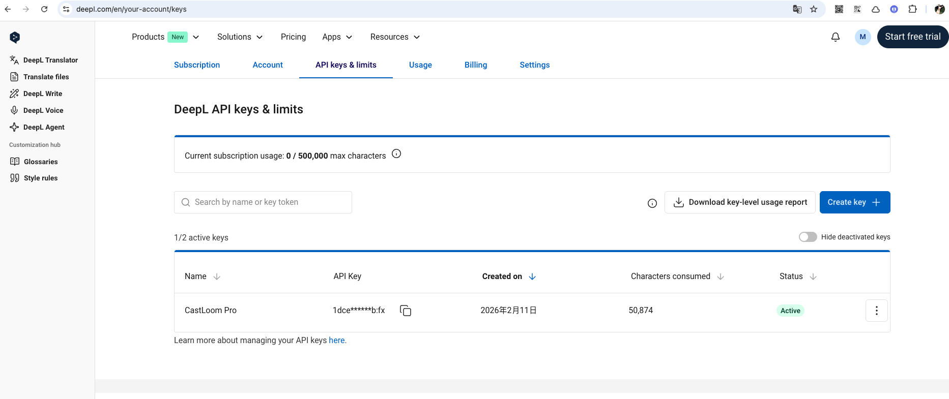 Create an Integration and get your API key from the link below, then paste the API Key into CastLoom Pro settings and choose your target language.