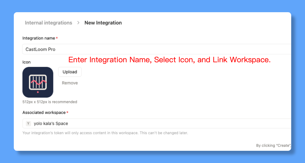 Enter a name, upload an icon, choose the workspace to link, then click "Create".